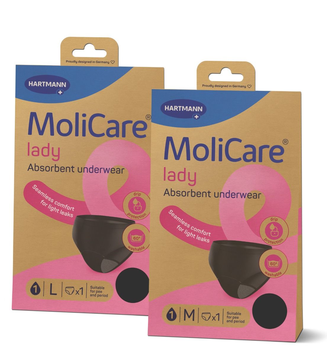 Πλενόμενο βρακάκι ακράτειας Molicare Hartmann σε μαύρο χρώμα για γυναίκες για ελαφρά ακράτεια(απώλεια λίγων σταγόνων). Δεν διαφέρει από τα κανονικά εσώρουχα. Το εσώρουχο Lady απορροφά όσο 4 ταμπόν και έχει άνεση χωρίς ραφές για διακριτική προστασία. Πλενόμενα, απορροφητικά εσώρουχα για γυναίκες, για εύκολη διαρροή ούρων ή έμμηνο ρύση. Είναι εξαιρετικά διακριτικά και άνετα χάρη στα υλικά που χρησιμοποιούνται. Έχουν απρόσκοπτη ραφή, επομένως δεν φαίνονται κάτω από τα ρούχα. Δεν περιέχουν βιοκτόνα, είναι κατασκευασμένα από υφάσματα με το πιστοποιητικό OEKO TEX, η συσκευασία είναι από ανακυκλωμένο χαρτί με το πιστοποιητικό FSC και είναι δερματολογικά ελεγμένα.